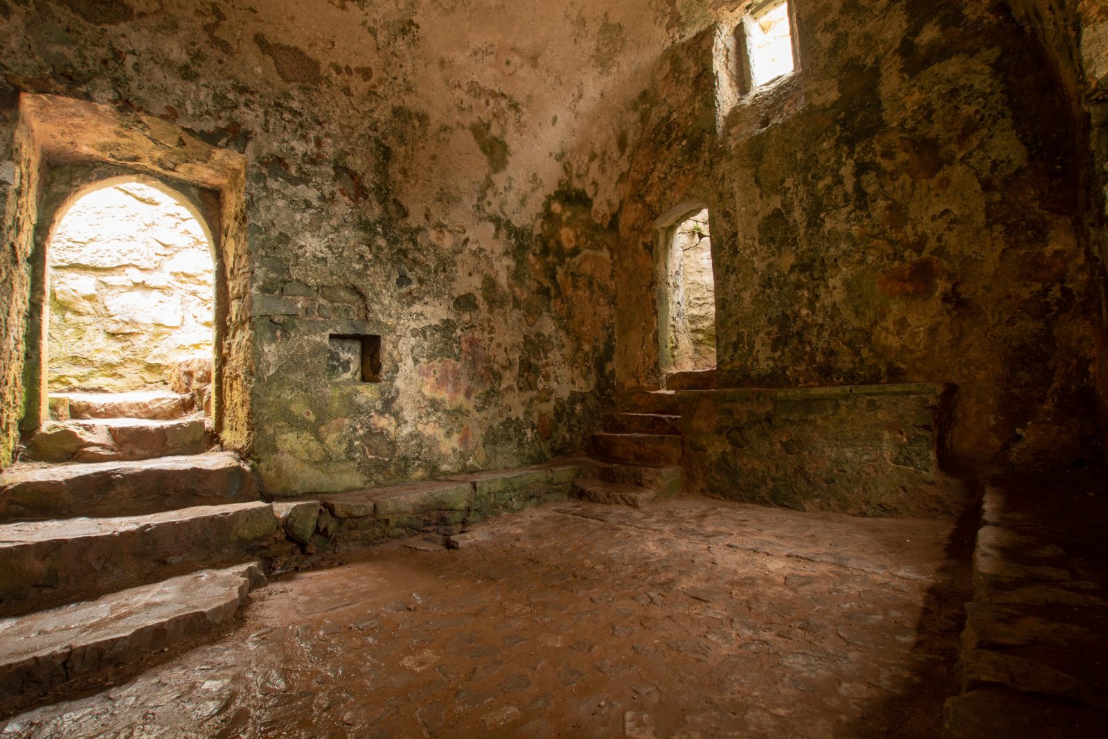 St Govan lived within a small cave in the fissure of the cliff. This is now reached by a long flight of stone steps, the number of which is said to vary depending on whether one is ascending or descending.